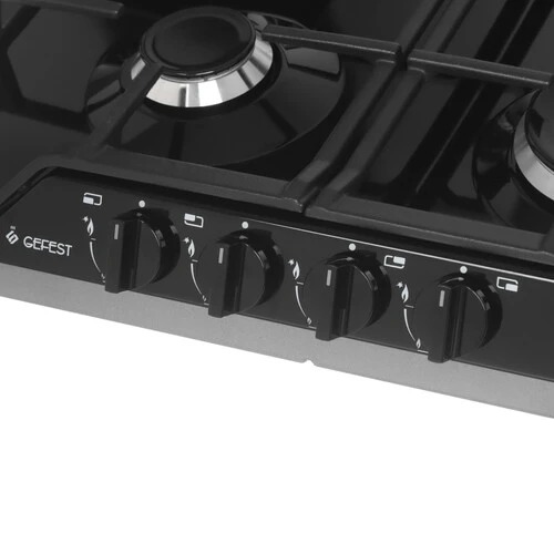 Gefest ПВГ 1212-02 К3 имеет составные чугунные решетки, не допускающие опрокидывания посуды небольшого диаметра. Для турки предусмотрена отдельная подставка. Рабочая панель из эмалированной стали легко очищается от накопившихся загрязнений. Фиксированное положение «Малое пламя» служит для томления и разогрева пищи. Активировать функцию электророзжига можно путем поворота механических переключателей.