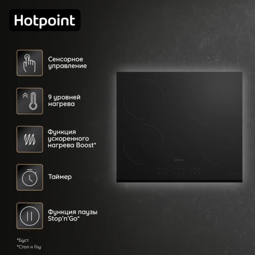 Индукционная варочная поверхность Hotpoint HB 1560S BF обеспечивает комфортное и качественное приготовление. Техника предоставляет в ваше распоряжение сразу 4 конфорки с функцией распознавания наличия посуды. Управление интуитивно понятное, посредством сенсоров, есть защитное отключение, блокировка и таймер. 9 уровней нагрева позволяют с легкостью подобрать необходимый для любого блюда.