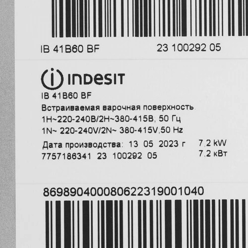 Indesit IB 41B60 BF управляется простым касанием сенсорных кнопок. Таймер с автоматическим отключением позволяет запрограммировать определенное время работы конфорок. Для защиты от случайного изменения параметров есть кнопка блокировки панели управления. Индикаторы остаточного тепла и технология защиты от перелива повышают безопасность в эксплуатации варочной поверхности.