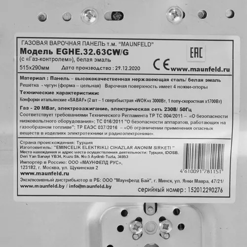 Газовая варочная поверхность MAUNFELD EGHE.32.63CW/G характеризуется практичностью, функциональностью и надежностью. Она оборудована двумя конфорками, поэтому подходит для компактной кухни. Верхняя панель выполнена из износостойкой эмалированной стали в белом цвете, а для прочного удержания посуды установлены чугунные решетки. Функция электроподжига автоматически активируется при повороте переключателей, с помощью которых можно легко контролировать интенсивность подачи пламени. К одним из преимуществ MAUNFELD EGHE.32.63CW/G относится система газ-контроля, исключающая утечку топлива при затухании пламени для высокого уровня безопасности.