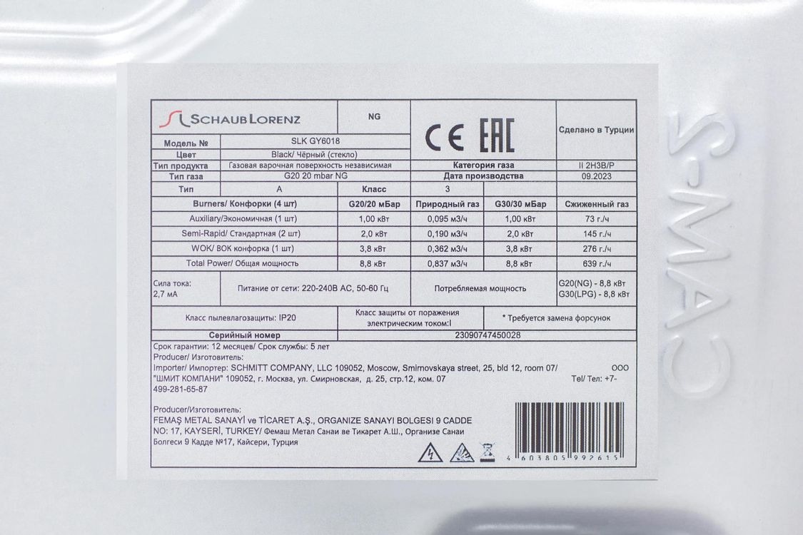 Газовая варочная панель Schaub Lorenz SLK GG6018.