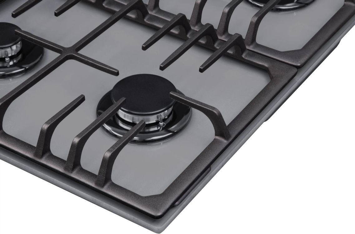 Практичность дополняют съемные чугунные решетки, устойчивые к деформации под тяжелой посудой и обеспечивающие надежную опору. В комплекте идут жиклеры для баллонного газа, монтажный набор и уплотнительная лента, что облегчает подключение в разных условиях. Параметры ниши для встраивания 56×49 см и ширина панели 61 см упрощают планирование установки, а длина кабеля 1,2 м и подключение газа 1/2″ делают монтаж удобным.