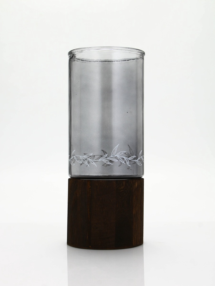 Ваза для цветов с деревянной подставкой из темного стекла, 25.5×10 см, 1.25 литра