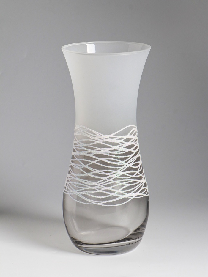 Дымчатая волна в прозрачном стекле. Ваза «Полли» высотой 26 см — это настольная ваза, где игра света и фактуры создает современный акцент для интерьера. Её форма вдохновлена плавным движением воды, а дымчатый градиент добавляет глубину и лёгкую таинственность.