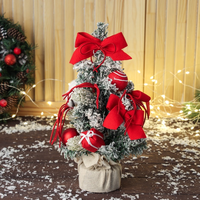 Эта настольная ёлка создаёт уют и праздничную атмосферу даже в небольших пространствах. Яркие красные украшения на зелёной хвое напоминают о классических новогодних традициях и помогают быстро преобразить интерьер к зимним праздникам.