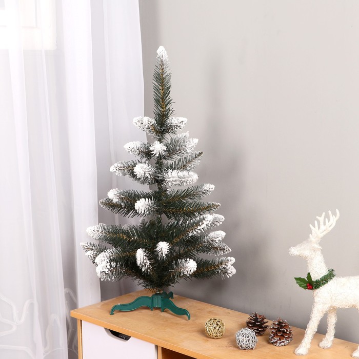 Напольная искусственная ёлка высотой 70 см с зелёной хвоей и снежными кончиками создаёт атмосферу зимнего уюта в любом помещении. Отгибающиеся ветки из ПВХ обеспечивают удобство в формировании и размещении, позволяя адаптировать форму под интерьер. Модель отлично вписывается в разные стили, включая скандинавский, классический и ар-деко.