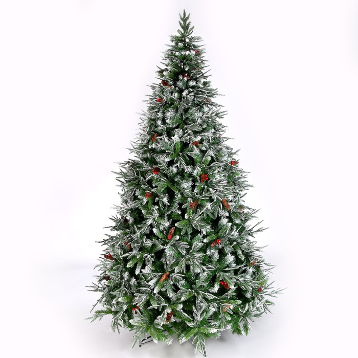 Ёлка "Виктория" с калиной и шишками (2318 веток) подойдёт для преображения интерьера к Новому году в больших гостиных, залах, офисах, торговых центрах и других помещениях с высокими потолками. Зелёная ель открывает поле для творчества, ведь её можно украсить на свой вкус, стоит только дать волю фантазии.