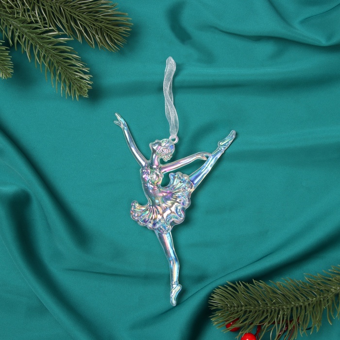 Прозрачная балерина с лёгким переливом украсит новогоднюю ёлку, привнося в интерьер изящество и воздушность. Её изящная поза и лаконичный дизайн сочетают в себе черты ар-деко, классики и скандинавского стиля, подчёркивая праздничную атмосферу.
