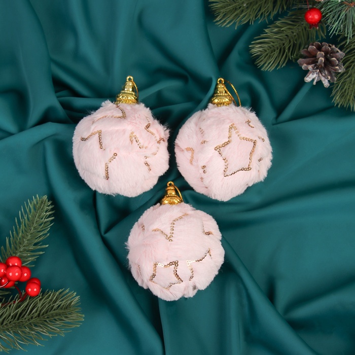 Мягкие рождественские шары в нежных розовых тонах — набор из трёх украшений диаметром 8 см с текстильной отделкой и пластиковой основой. Такие шары создают уютный образ ёлки в стиле шебби-шик, объединяя комфорт и традиции праздничного декора.