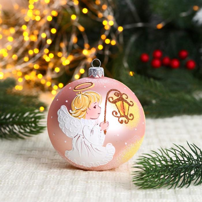 Ёлочный шар «Ангел с фонариком», 10 см, стекло, розовый с рисунком — это тёплое и душевное украшение для новогодней ёлки. Игрушка с образами ангела и светильника подходит для детской комнаты, семейного интерьера или витрины — нежное решение для тех, кто ценит веру, добро и атмосферу настоящего чуда без излишеств.