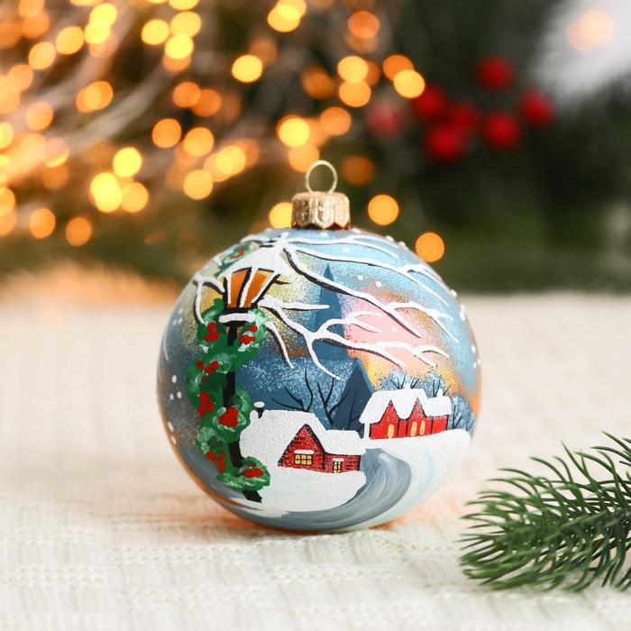 Ёлочный шар «Фонарь», 10 см, стекло, голубой с рисунком — это тёплый и атмосферный акцент для новогоднего декора. Украшение с образом светящегося фонаря подходит для ёлки, витрины или подарочной композиции — душевное решение для тех, кто ценит ностальгию, уют и атмосферу настоящей зимней сказки без излишеств.