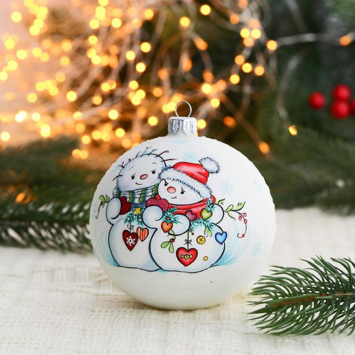 Ёлочный шар «Снеговички», 10 см, стекло, белый с рисунком — это добрый и светлый акцент для новогоднего оформления. Украшение с изображением весёлых снеговиков подходит для ёлки, детской комнаты или зимней композиции — тёплое решение для тех, кто ценит простоту, детский восторг и атмосферу настоящего праздника без излишеств.