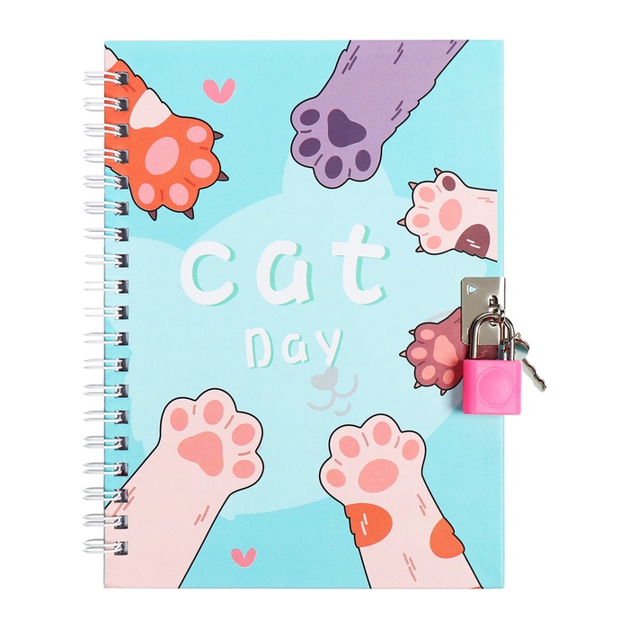 Записная книжка подарочная, 45 листов, линия, на замке, на гребне, Лапки (17,8х13см)