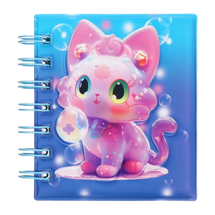 Записная книжка подарочная на гребне 80л,линия, цветной блок,обложка ПВХ 3D Кошка(10х10,5см) 10539