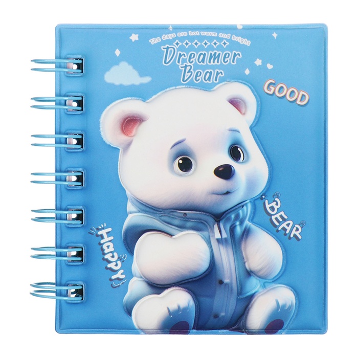 Записная книжка подарочная на гребне 80л,линия, цветной блок,обложка ПВХ 3D Мишка(10х10,5см) 10539