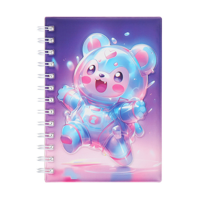 Записная книжка подарочная на гребне 80л,линия, цветной блок,обложка ПВХ 3D Мишка(17,6х13,5см) 105