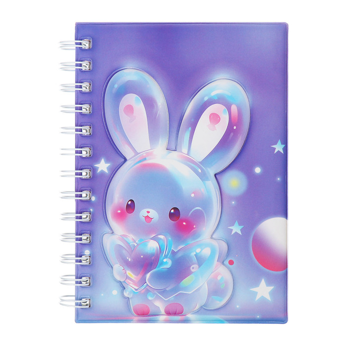 Записная книжка подарочная на гребне 80л,линия, цветной блок,обложка ПВХ 3D Зайка(17,6х13,5см) 105