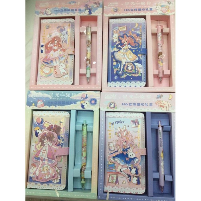 Записная книжка в подарочной коробке А6 с фигурным хлястиком,обл.пвх. с ручкой, Аниме МИКС